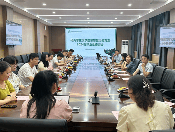 202会议室举办了2024届毕业生座谈会。此次座谈会由思政系主任倪素香主持,学院副院长简繁、思政系教师代表以及本、硕、博毕业生代表共同参与。
