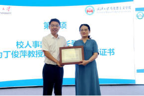 奠定了坚实的基础,来到武大后,比我年长的老师带着我搞教学、做科研、同辈的老师们与我团结合作、共同创业,年轻教师展露的朝气锐气激励我努力学习、不断进步;作为老师,课堂上与课堂外我感到自己在和学生一起共同进步;年少时,我家里生活艰难,但父母千方百计地支持我上学;成家后,我的爱人更是毫无保留地支持我的学业和工作,没有家人的理解和支持,我也不可能走到今天。在讲话的最后,丁俊萍教授更是特别感谢了党领导人民共同奋斗的伟大时代,正是在改革开放和国家教育强国战略实施的影响下,丁俊萍教授才得以躬耕杏坛,用热情、热爱、热忱谱写了铸魂育人的华章。