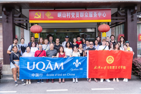迎来了一批特殊的客人——来自魁北克大学的师生代表团,双方在学院202会议室举行了开班仪式。魁北克大学孙敏(Min Sun)老师、聂鉴冰老师,武大马院温权教授、燕唯佳老师,以及魁北克大学的26名学生和马院的志愿者们参与了仪式。温权教授代表学院向他们表示了最诚挚的欢迎。志愿者们以饱满的热情进行了自我介绍,不仅展现了个人风采,更表达了对未来几天将为来宾们带来的精彩访学体验的期待。随着开幕式的圆满结束,来访师生与马院的老师们以及热情的志愿者们一同留下了珍贵的合影,纪念这一难忘时刻。