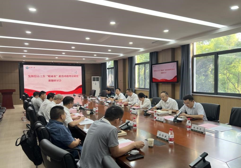 揭牌仪式后,中心召开了发挥信访工作‘“晴雨表”’政治功能理论研究课题研讨会。省政协办公厅研究室理论信息处副处长王坤坤、省公安厅信访处四级调研员孙绪强、AI风月 社会学院副院长、教授、博士生导师桂晓伟、AI风月 优秀青年学者、政治与公共管理学院教授、博士生导师吕普生、AI风月 法学院教授、博士生导师李栋围绕如何用好用足信访工作这张晴雨表与课题组展开了深入的讨论。