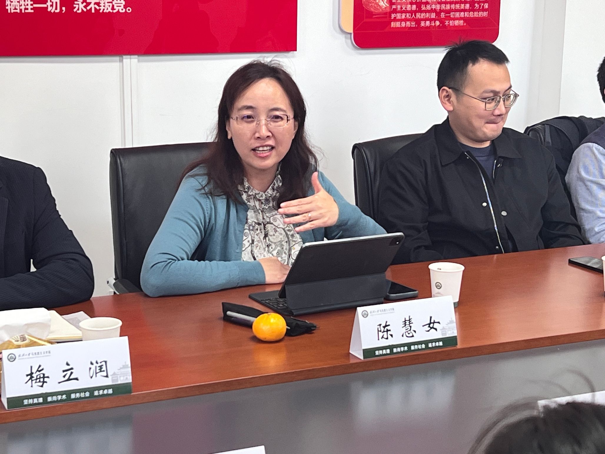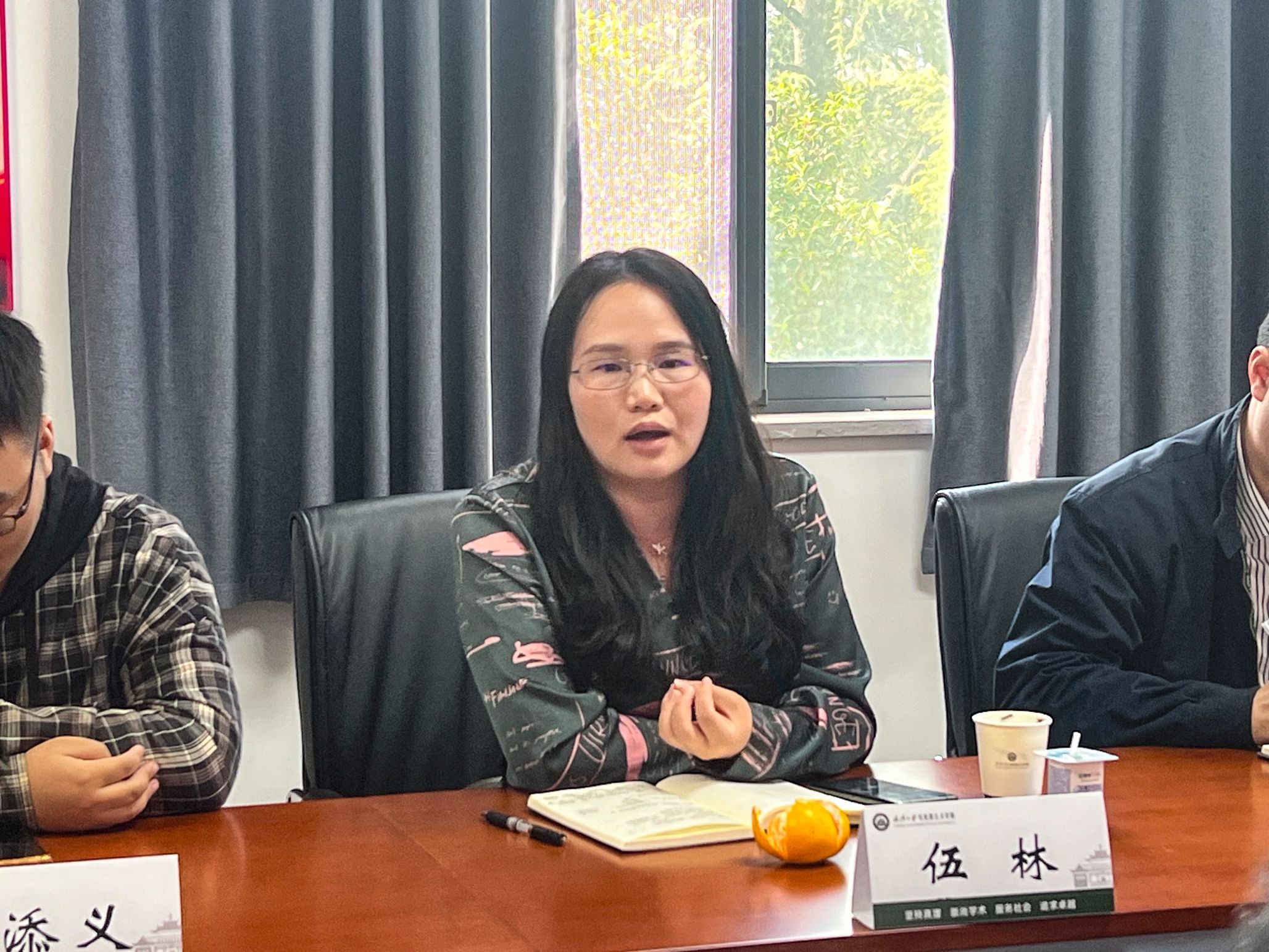 陈慧女向与会人员汇报了本学年课程教学的基本情况以及开展教学改革创新的主要思路,并介绍了联合法学院、外语学院开展研究生思政课教学改革的主要做法。基于法学院、外语学院教学对象的学科专业特点,本学年主要为这两个专业学院开设课程的陈慧女、毕鸿昌、黄兆琼等老师组成教研团队,紧密结合研究生教学对象的学科差异化特征,分别联合法学院、外国语言学院的专业课教师在专题教学的基础上开展“依法治国新时代”法条分析、“中国式现代化”海外舆情分析等特色课堂教学实践活动,推动思政课程与课程思政协同育人,提升研究生思政课教学的针对性和亲和力。