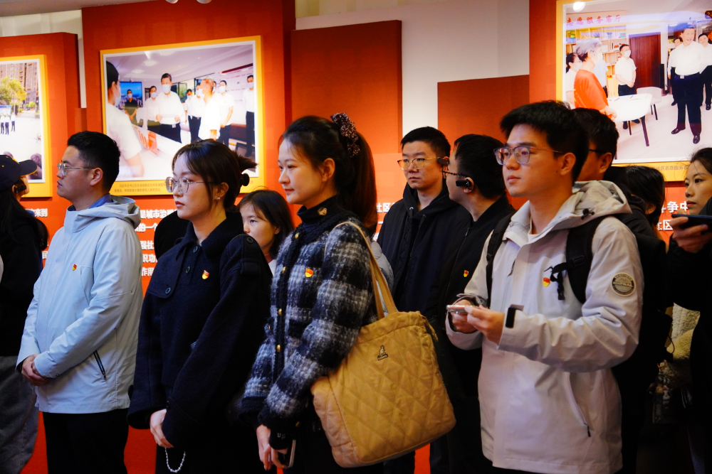 在社区党委书记、主任胡云的热情引导下,师生代表团先后参观了智苑社区的志愿服务客厅、老年人服务中心、党员群众服务中心和社区文化展馆等场所开展了详细的调研活动。在智苑社区,志愿服务已成为增强社会责任感、促进社会和谐的重要力量。特别是在志愿服务客厅,社区的党员志愿者们为居民提供了多种形式的帮助与支持,积极推动党建工作与志愿服务的相互渗透。调研过程中,师生们通过与社区工作人员的交流,深入了解了社区在推动志愿活动与党建教育深度融合方面的做法。
