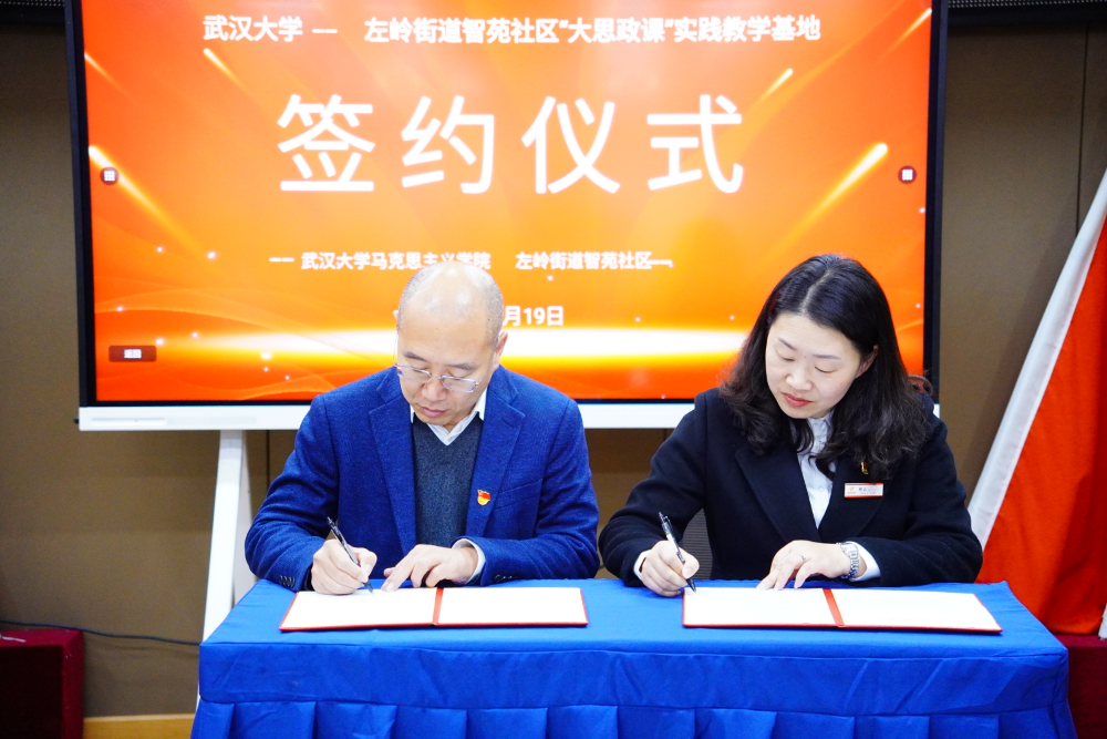 副院长陈世锋与左岭街道智苑社区党委书记胡云共同签署共建合作协议。此次授牌仪式和签约的成功举行,预示着双方将在基层党建领域与教学实践领域展开更深层次合作。