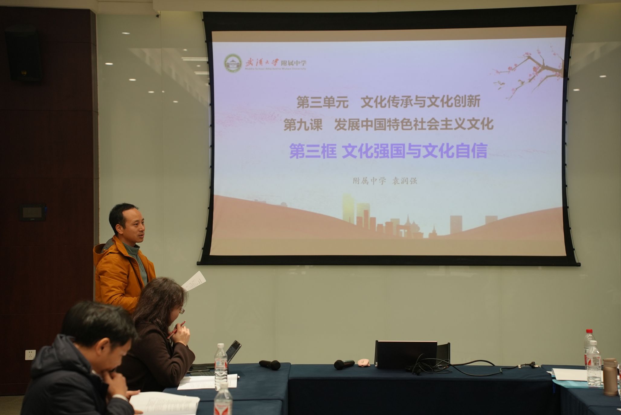 展示结束后,武昌区教研中心教研员黄志平老师对五位教师的精彩展示进行了全面而深入的点评。他特别指出,每个学段都精准把握了本学段学情,抓住了学生的已知点、困惑点和发展点,这是做好大中小思政一体化工作的前提和基础。小学的两堂道法课,一堂课围绕古代科技,另一堂课聚焦文化多样性,都充分展现了小学教学的特色。初中阶段的关键词是“体验”,课程围绕文化内涵和文化自信展开,老师们能紧密结合时政,用课标中的典型案例进行小结,有助于坚定学生的文化自信,增强他们的爱国情感和责任感。高中阶段的课程同样注重文化自信,但教学方法更多采用议题式,注重探究和辨析。而大学阶段的教学则更注重学理性,理论体系很强,辨析探究环节丰富。老师们的讲课充分考虑了本学段学生的特点,体现了循序渐进、螺旋上升的教学过程。同时,他还针对各学段的教学提出了具体建议,比如小学学段的两位老师可以围绕学科核心素养的五个方面来制定素养目标,初中学段的老师则可以结合时政热点培养学生的社会责任感和使命感,高中和大学学段的老师们建议继续深化教学内容,注重培养学生的批判性思维和创新能力。