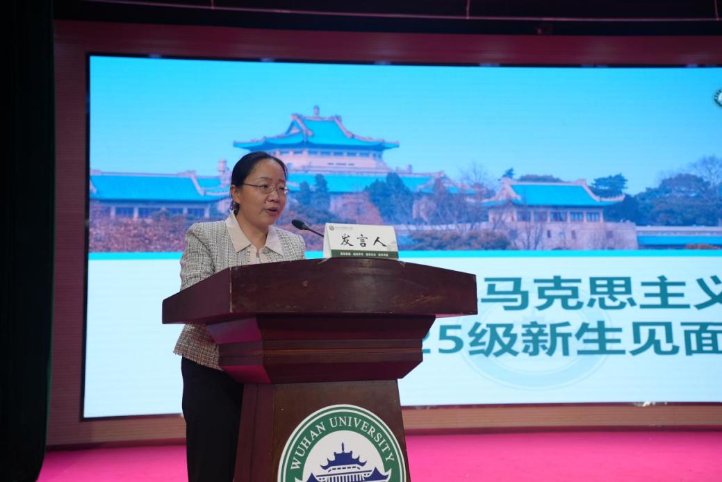 会议在庄严的国歌声中正式开始。院长罗永宽教授首先对新同学的到来表示欢迎,介绍了2025级新生基本情况。学院本学年共招收本硕博新生264人,生源质量持续提升。罗院长系统阐述了学院发展优势:学科底蕴深厚,师资力量雄厚;学生培养成效显著,在各类竞赛中屡获佳绩;学风建设成果突出,连续荣获“书香学院”称号。围绕育人理念,他提出四点希望:一是“用经典筑牢信仰”,精研原著,学马信马;二是“用钻研淬炼真知”,勤奋治学,提升理论素养;三是“用实践砥砺才干”,勇做走在时代前列的奋进者;四是“用修身涵养品性”,践行“明诚弘毅”精神,做到诚信友善。他强调,各位同学要珍惜在珞珈山下的宝贵时光,全面发展,在新征程上绽放青春光彩。
