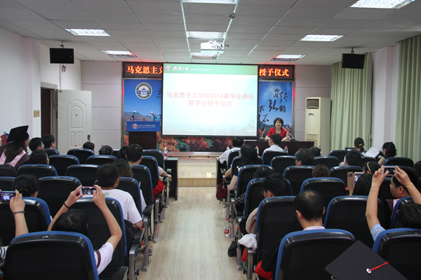 2014届毕业典礼及学位授予仪式在学院301报告厅成功举行,仪式由院党委书记谭玉敏主持