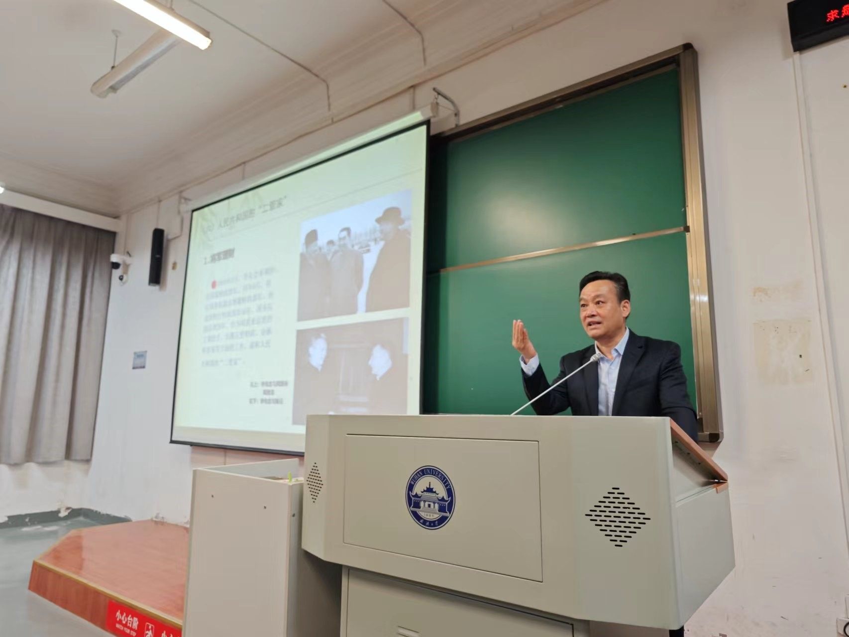 接下来,何光耀教授讲述了李先念同志在中国共产党历史上所作出的八个方面的重要历史贡献:懋功会师的开路先锋、西路军“不下马的将军”、中原敌后抗战的中流砥柱、全国解放战争的揭幕人、新中国湖北首任省委书记、人民共和国的“二管家”、粉碎“四人帮”的重要决策人、改革开放的有力推动者。何教授详细讲述了西路军英勇作战的历史,指出西路军所属各部队,是经过中国共产党长期教育并在艰苦斗争中锻炼成长起来的英雄部队。在极端艰难的情况下,在同国民党军队进行殊死搏斗中,西路军的广大干部、战士视死如归,创造了可歌可泣的不朽业绩。同时,何教授告诫同学们对待历史要坚持正确党史观,秉持科学的态度,不能对历史妄下结论,要有敬畏感。