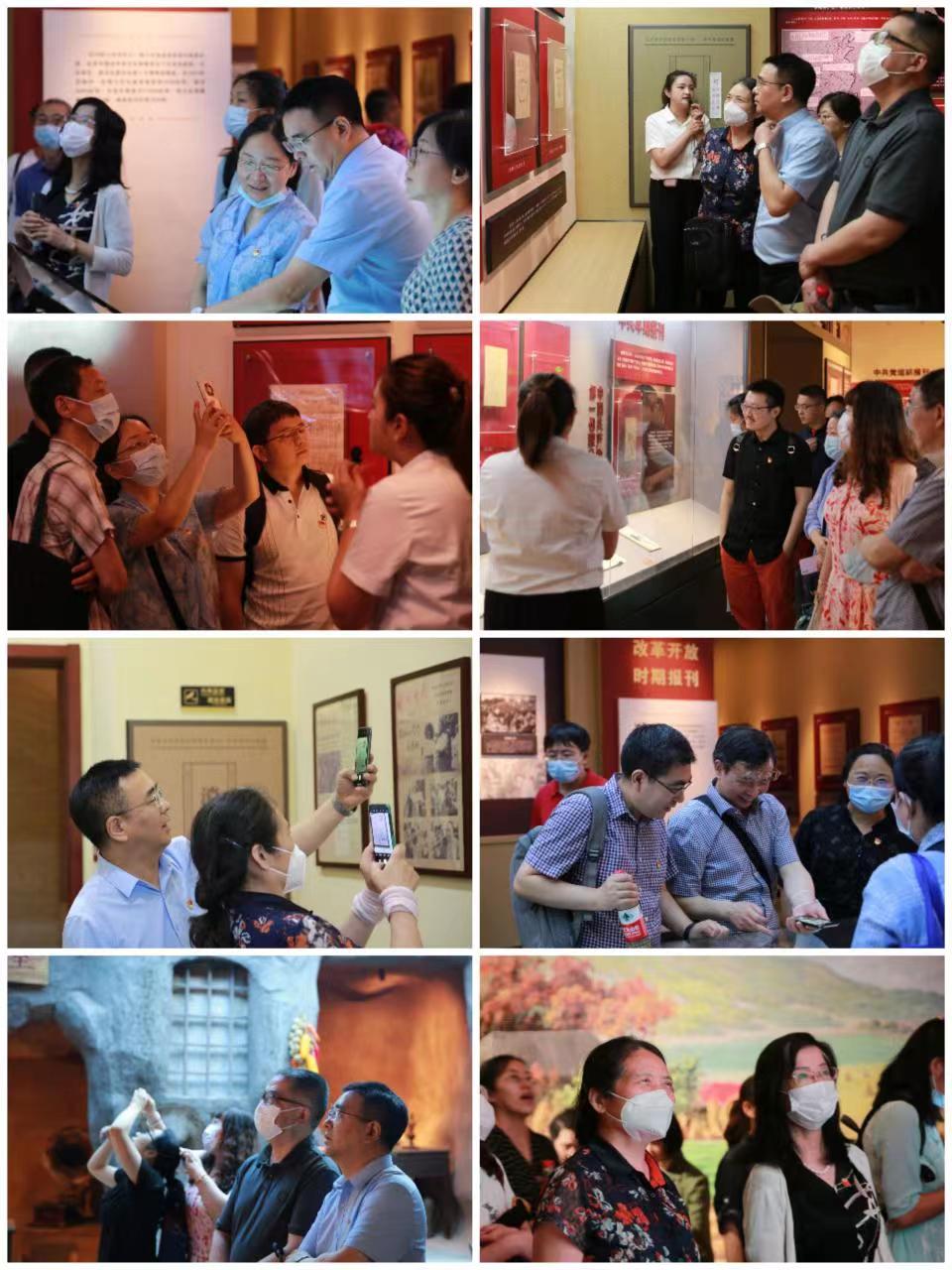 部分教职工和学生代表一同参加了签约仪式,并认真参观了“没有共产党就没有新中国——百年报刊馆”展览。大家在博物馆讲解员的带领下,回顾了党在不同时期的报刊文献;在声光电、情景模拟、体验互动等现代科技手段的丰富互动设备帮助下,零距离感受到党在不同时期的红色报刊文献的历史脉动。参观完展览后,大家纷纷表示百年报刊馆展出的宝贵资料为我们呈现了最真实的党史,使大家接受了一次深刻的红色精神洗礼;非常高兴能与龙源红色报刊博物馆共建实践教学基地,以后要经常带领同学们过来参观学习,加强合作交流;学习好利用好这些红色资源,传承红色基因,赓续红色血脉。