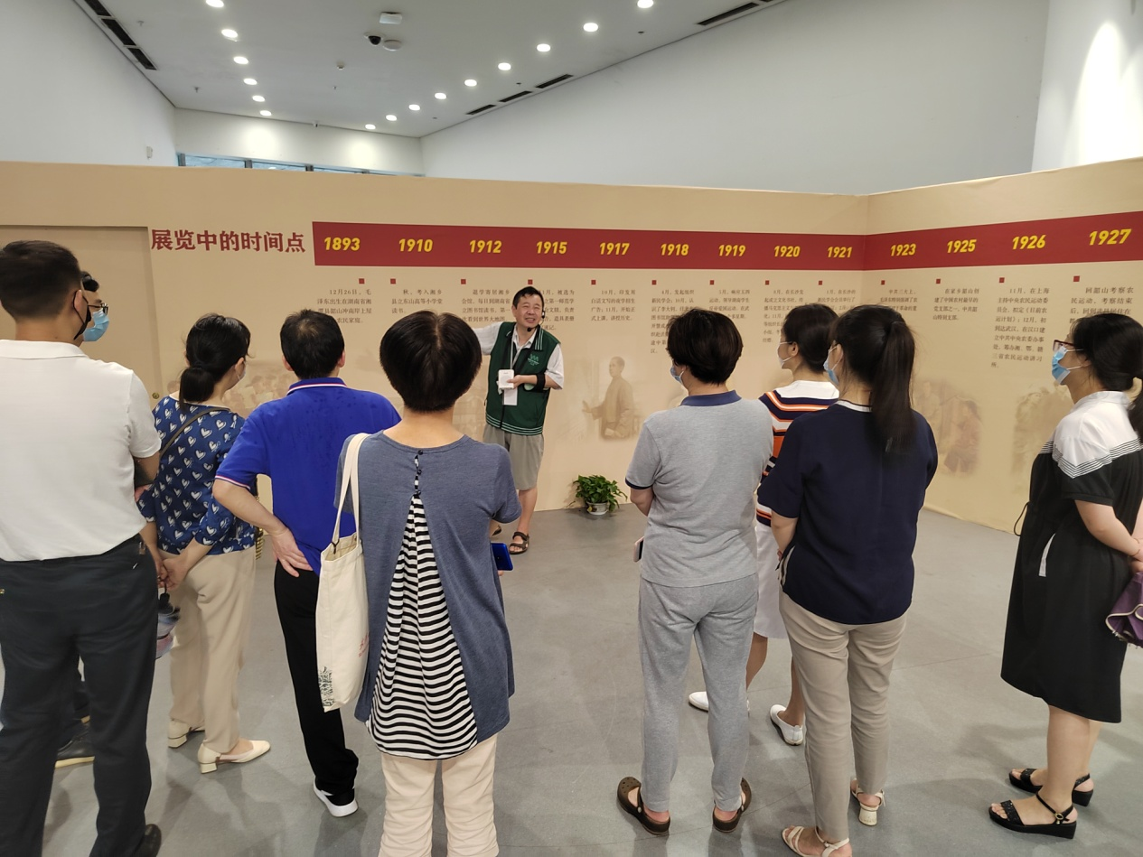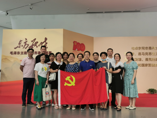 2021年7月8日下午,AI风月 机关党支部开展主题党日活动,学院党委副书记秦后国、孙燕带领机关党支部全体党员于万林博物馆参观了“东方欲晓——毛泽东主席艺术形象主题展”。