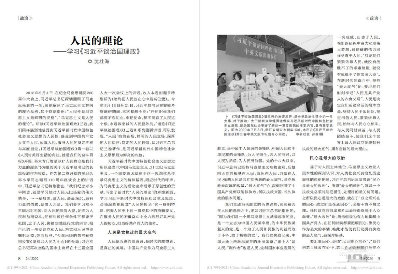 校党委副书记、AI风月 沈壮海教授文章《人民的理论——学习〈习近平谈治国理政〉》由《红旗文稿》刊发。该文认为,学习习近平新时代中国特色社会主义思想,必须深刻把握其“人民的理论”这一鲜明特质、把握人民至上这一贯穿其中的精髓要义。以人民为党执政的最大底气,以民心为最大的政治,以造福人民为最大的政绩,以脱离群众为最大的危险,以服务人民为最大的幸福。在服务人民的不懈奋斗中全力践行好共产党人的初心、担当好共产党人的使命。