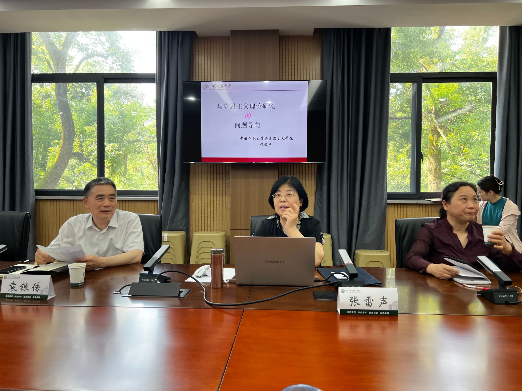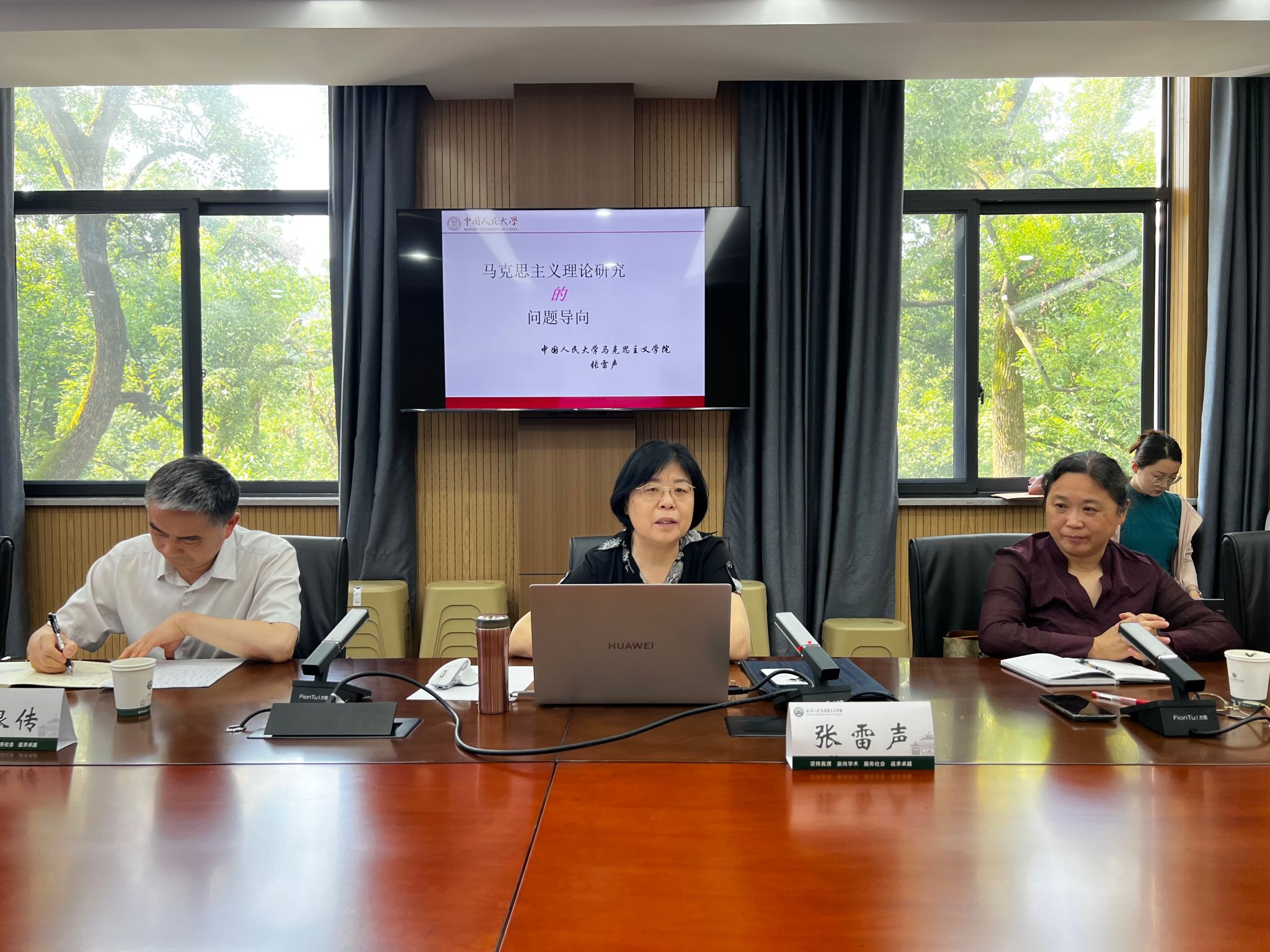 师生的必备能力,问题导向是理论研究的中心和品格。随后,张雷声教授高屋建瓴,从理论研究的基础、理论研究的开端、理论研究的关键、理论研究的方法四个层面,逐一展开深入解读。她指出理论研究的基础是阅读经典,做到“两个转变”:一是从图文、音像、视频等的阅读向文字交流的转变,二是从浅层阅读向深度阅读的转变。强调年轻学者要静心研读经典,边读边思,认真做好读书笔记,勤于练笔,从经典中获得养分、智慧、见识和功力,不断深化自身理论认识。理论研究的开端就是对于问题的选择,在论题选择过程中提升研究能力,确定研究方向。理论研究的关键是要有问题意识,要抓住事物的根本性质,探寻事物的发展规律。理论研究的方法就是问题求解,张教授以“马克思主义政治经济学研究主题问题研究”为例,介绍了如何运用“史论结合”的理论研究方法来研究具体问题,强调系统研究方法,强调要体现“三个逻辑相统一”,即理论逻辑、历史逻辑、实践逻辑的统一。