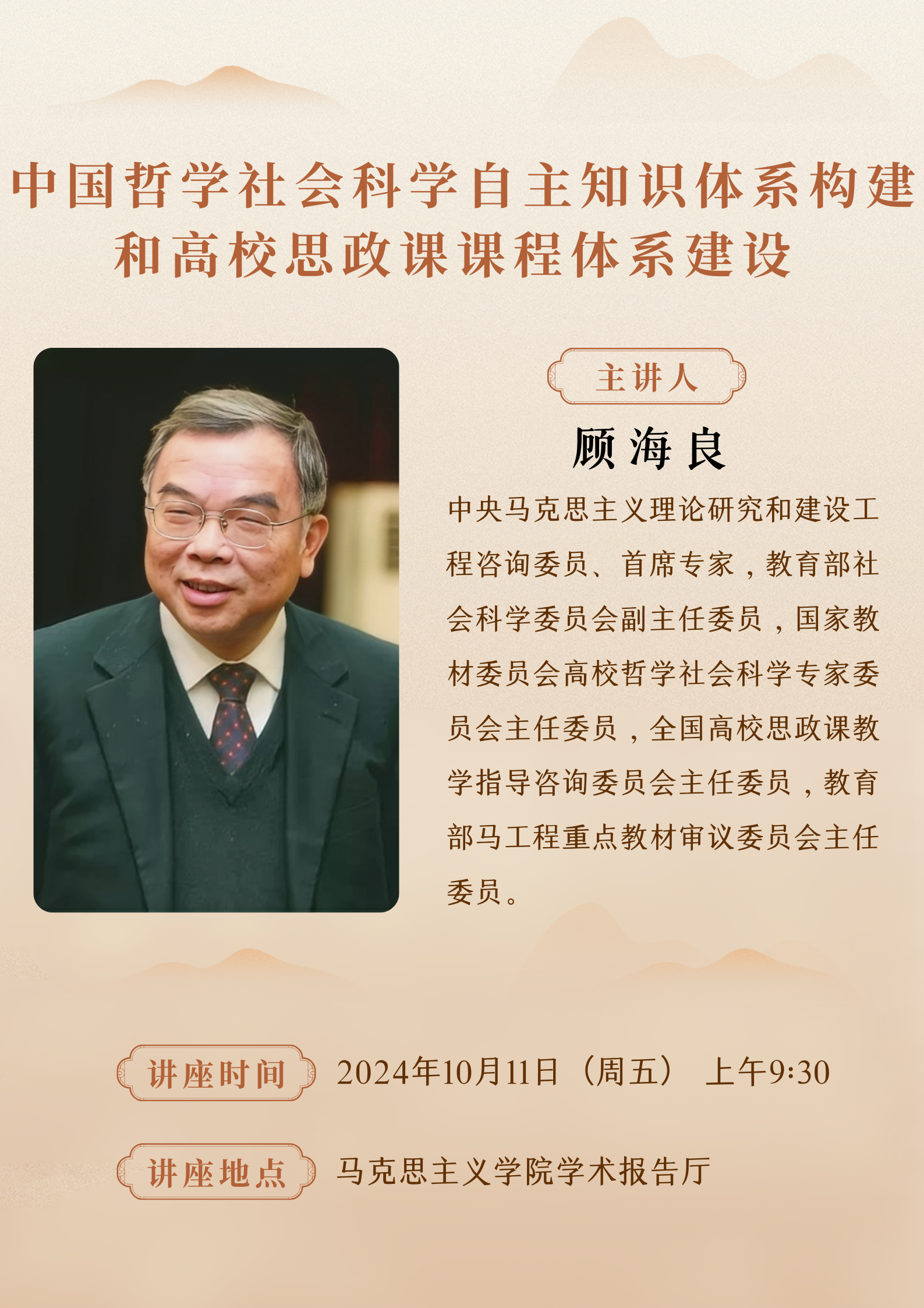 讲座主题:中国哲学社会科学自主知识体系构建和高校思政课课程体系建设