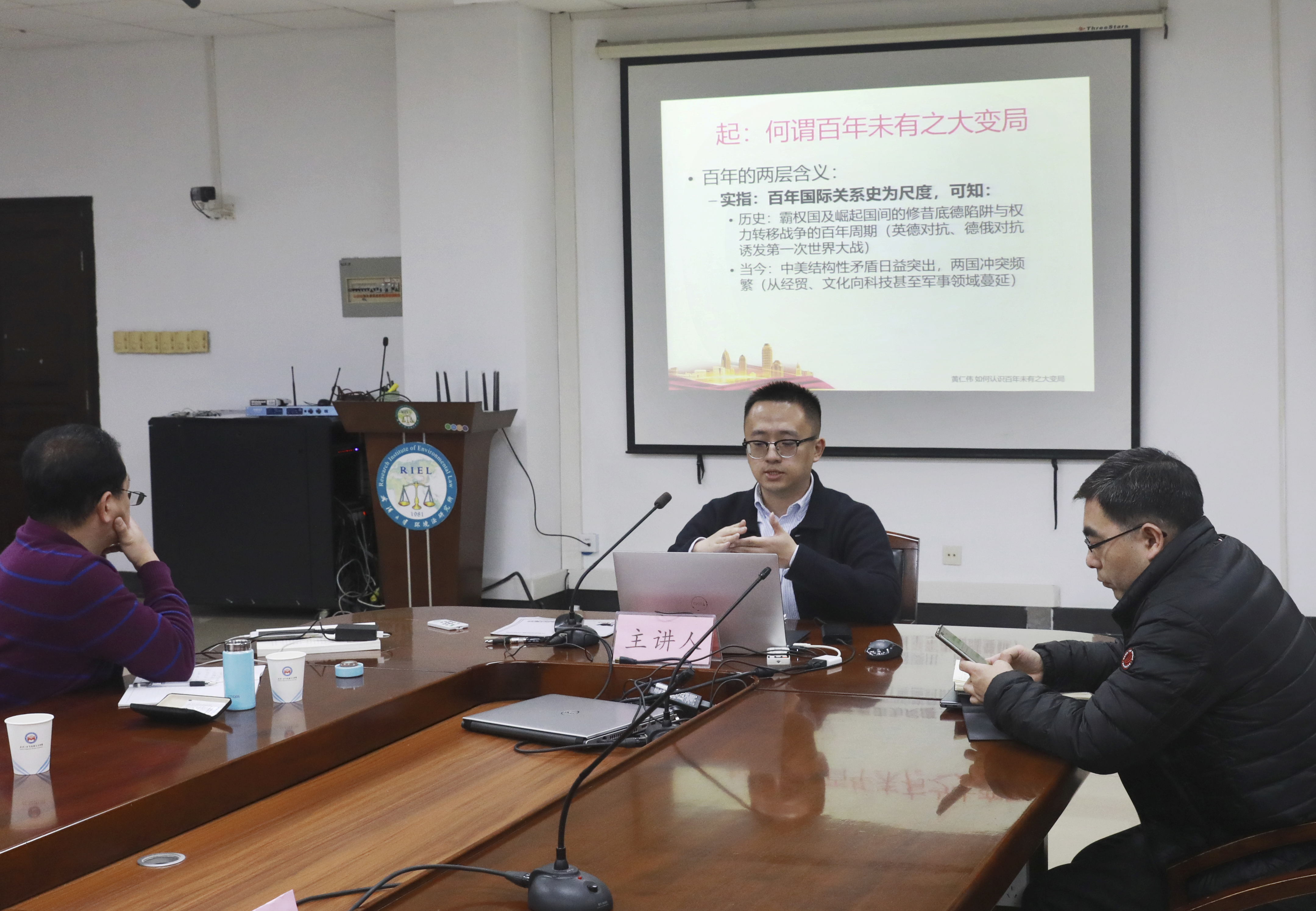 刘旻玮以“百年未有之大变局与民族复兴的国际战略环境”为题对专题内容进行了重点展示。以起承转合为逻辑主线展开教学内容的四个方面,即何谓百年未有之大变局、百年大变局的具体内涵、大变局下的战略窗口期、中国的战略应对。
