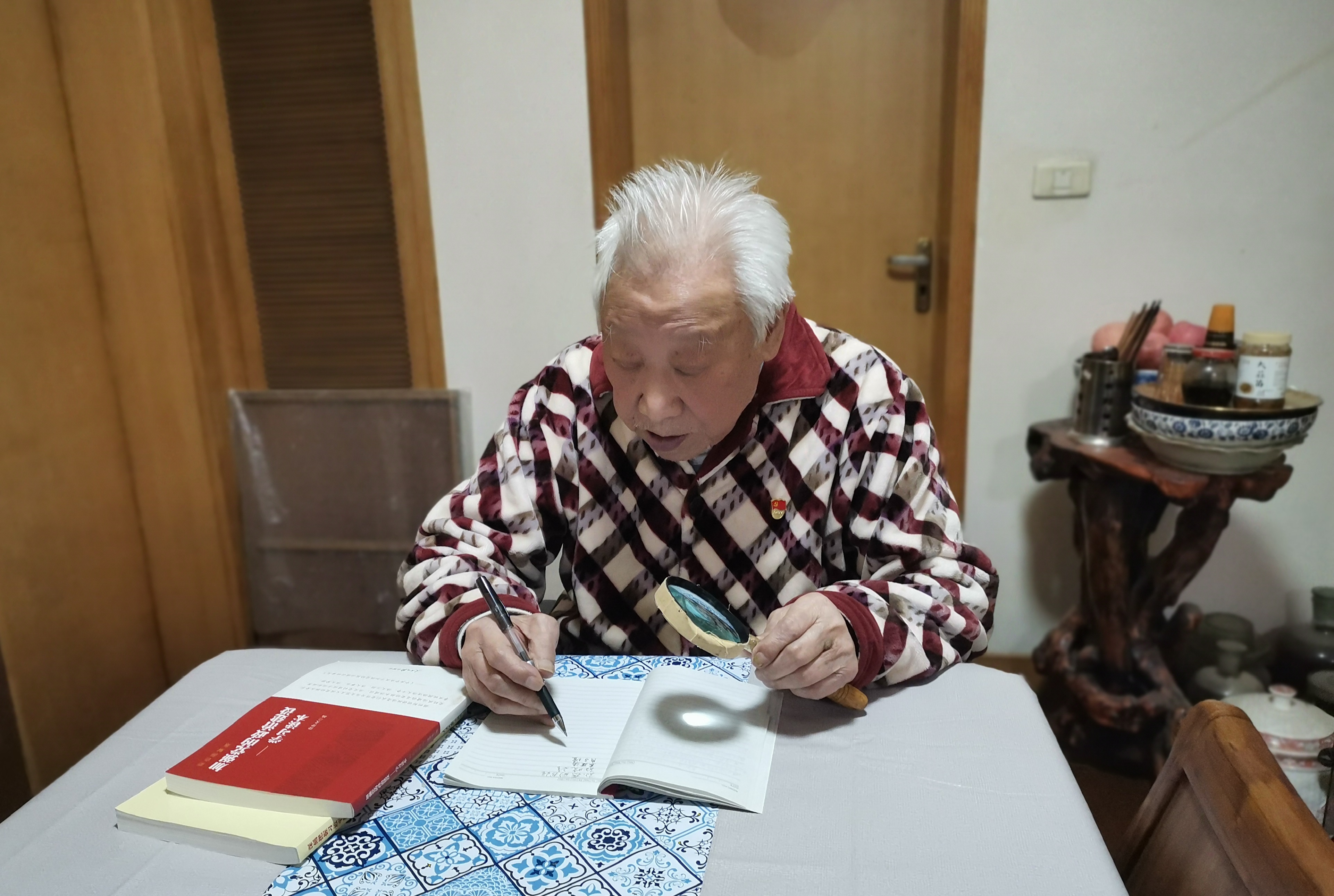 陈教授今年96岁,仍然精神矍铄、思维敏捷,而且记忆力惊人。党的二十大开幕那天,他在电视前边听习近平总书记的报告边做记录,很快就在当天上午写出了自己的感悟。寒暄片刻后,我们开始了对陈教授的采访。