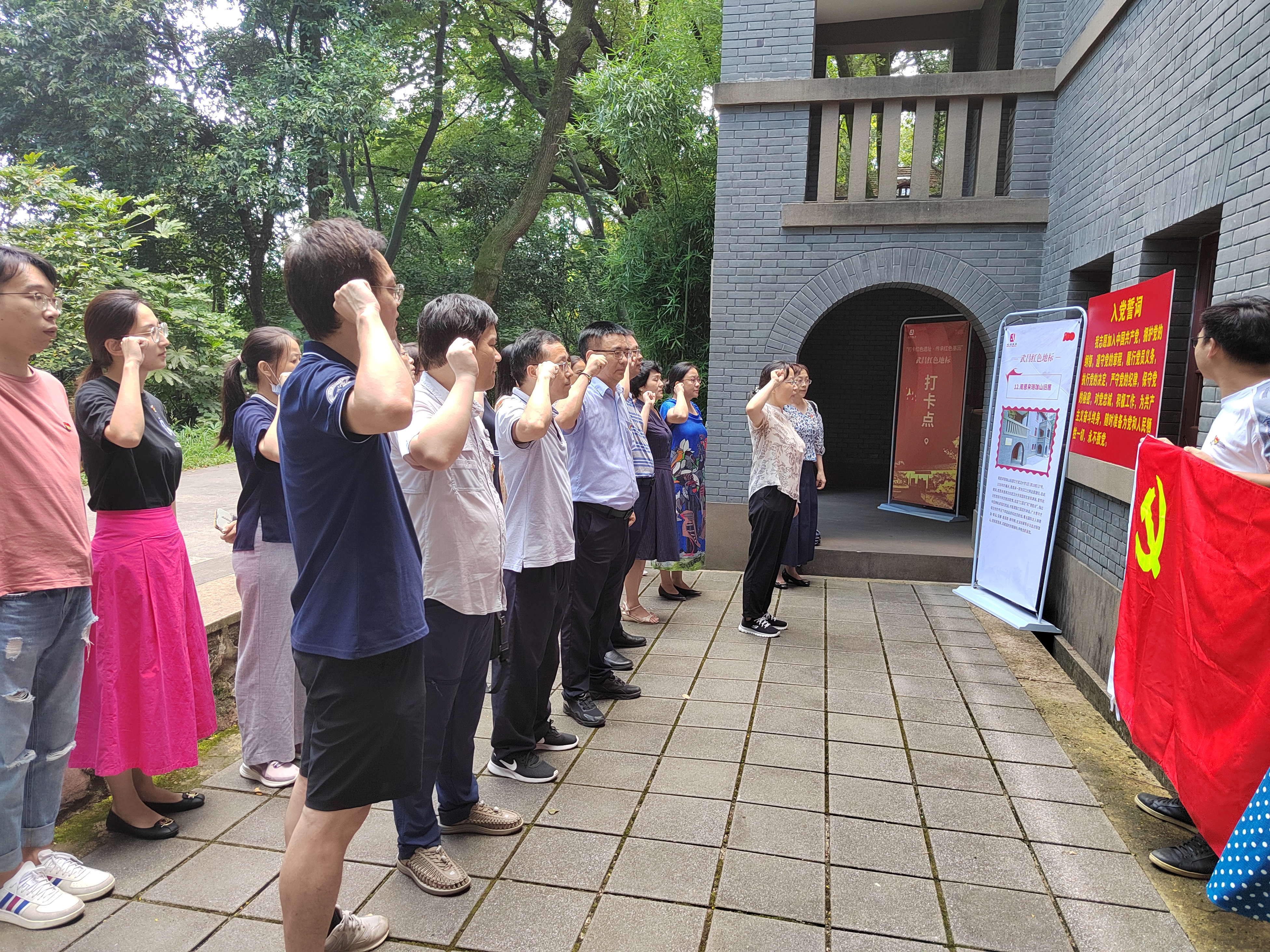 在参观结束后,在院党委副书记孙燕的带领下,罗永宽与参加本次学习教育的全体党员一起重温入党誓词。