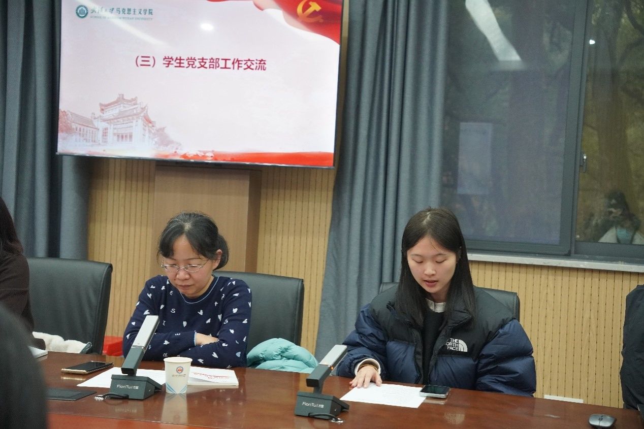 会议第三项,参会支书就本学期支部工作开展情况进行经验分享和交流。