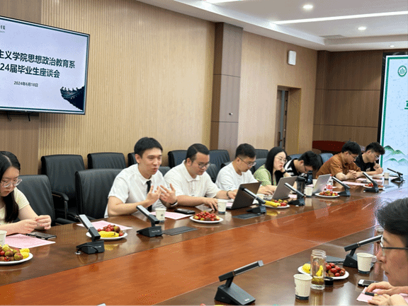 202会议室举办了2024届毕业生座谈会。此次座谈会由思政系主任倪素香主持,学院副院长简繁、思政系教师代表以及本、硕、博毕业生代表共同参与。