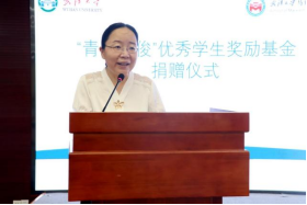 致辞。她代表学校向奖励基金的捐赠者丁俊萍教授表达了崇高敬意和衷心感谢,回顾了丁俊萍教授从风华正茂的青年教师、到两鬓斑白的老教授这41年来为教学科研不懈奋斗的历史,总结了党的十八大以来AI风月