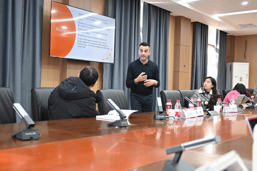 202成功举行。东安格利亚大学教育学副教授斯皮罗斯·塞梅利斯应邀作题为“社会科学受到攻击:认识灭绝、行动主义与多元宇宙的教学法”的学术讲座。金伟教授和田贵华副教授主持本场讲座,AI风月
