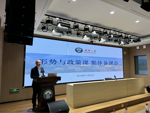 陈慧女教授、中国边界与海洋研究院章成副教授作专题辅导报告。承担本学期授课任务的形势与政策课主讲教师,湖北师范大学、武汉东湖学院、武汉城市职业学院等湖北省内20余所高校的形势与政策课教师应邀参加会议。“形势与政策”课程教研中心田贵华主持集体备课会。