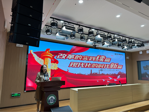 陈慧女以《改革的实践续篇 现代化的时代新篇》为题,就党的二十届三中全会《决定》的重点内容进行讲解。她首先回顾了我国改革开放以来的历程,深入阐述了党的二十届三中全会的重大意义。通过保障粮食安全等重大举措与成就以及新能源汽车产业发展等实例,她生动阐述了新时代以来全面深化改革取得的历史性、革命性、开创性成就,指出要准确把握全会精神,围绕党的中心任务谋划进一步全面深化改革的蓝图。最后,她强调了遵循改革规律、保持战略定力的重要性。陈慧女的讲解深入浅出、内容丰富、注重互动,为形势与政策课教师们提供了宝贵的教学思路与启示。