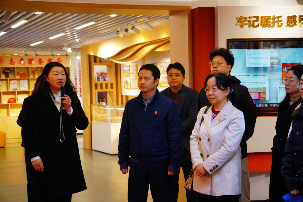 在社区党委书记、主任胡云的热情引导下,师生代表团先后参观了智苑社区的志愿服务客厅、老年人服务中心、党员群众服务中心和社区文化展馆等场所开展了详细的调研活动。在智苑社区,志愿服务已成为增强社会责任感、促进社会和谐的重要力量。特别是在志愿服务客厅,社区的党员志愿者们为居民提供了多种形式的帮助与支持,积极推动党建工作与志愿服务的相互渗透。调研过程中,师生们通过与社区工作人员的交流,深入了解了社区在推动志愿活动与党建教育深度融合方面的做法。