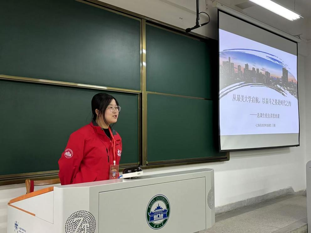 ——来自上海的选调生王瑾校友,以“坚持理想提升能力,专业服务基层治理”为主题,向学弟学妹们讲述了如何将自身专业与基层治理相结合的问题。她鼓励大家在学习理工科专业知识的同时,也要重视自身人文素养的提升,要学会用更准确更生动的语言表达观点,展现自己。王瑾提出,在思考职业发展道路时,不仅要考虑薪资和形势,更要看清自我内心需求,注重个人理想和兴趣。