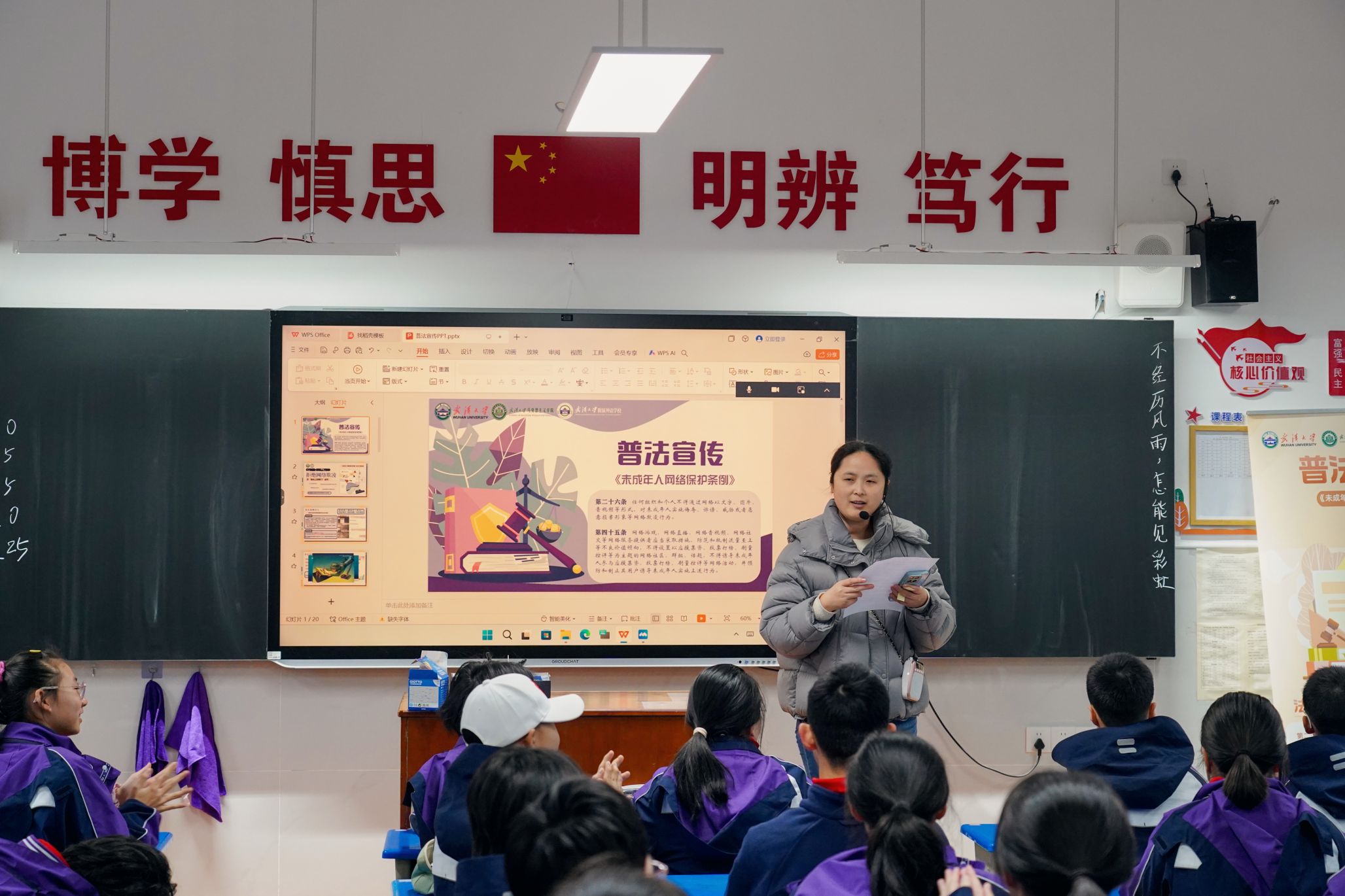 附属外语学校七年级10班道德与法治课堂,以《未成年人网络保护条例》为主题,为师生们带来一场别开生面且极具教育意义的普法盛宴。本次活动是“国家宪法日”特别主题课堂活动之一。同学们认真听讲,积极思考,主动回答问题。此次普法活动的开展,不仅让初中学生深入了解了《未成年人网络保护条例》,增强了他们的网络安全意识与法律素养,助力未成年人健康成长,也为大中小思政一体化教育模式的实践提供了优秀范例。