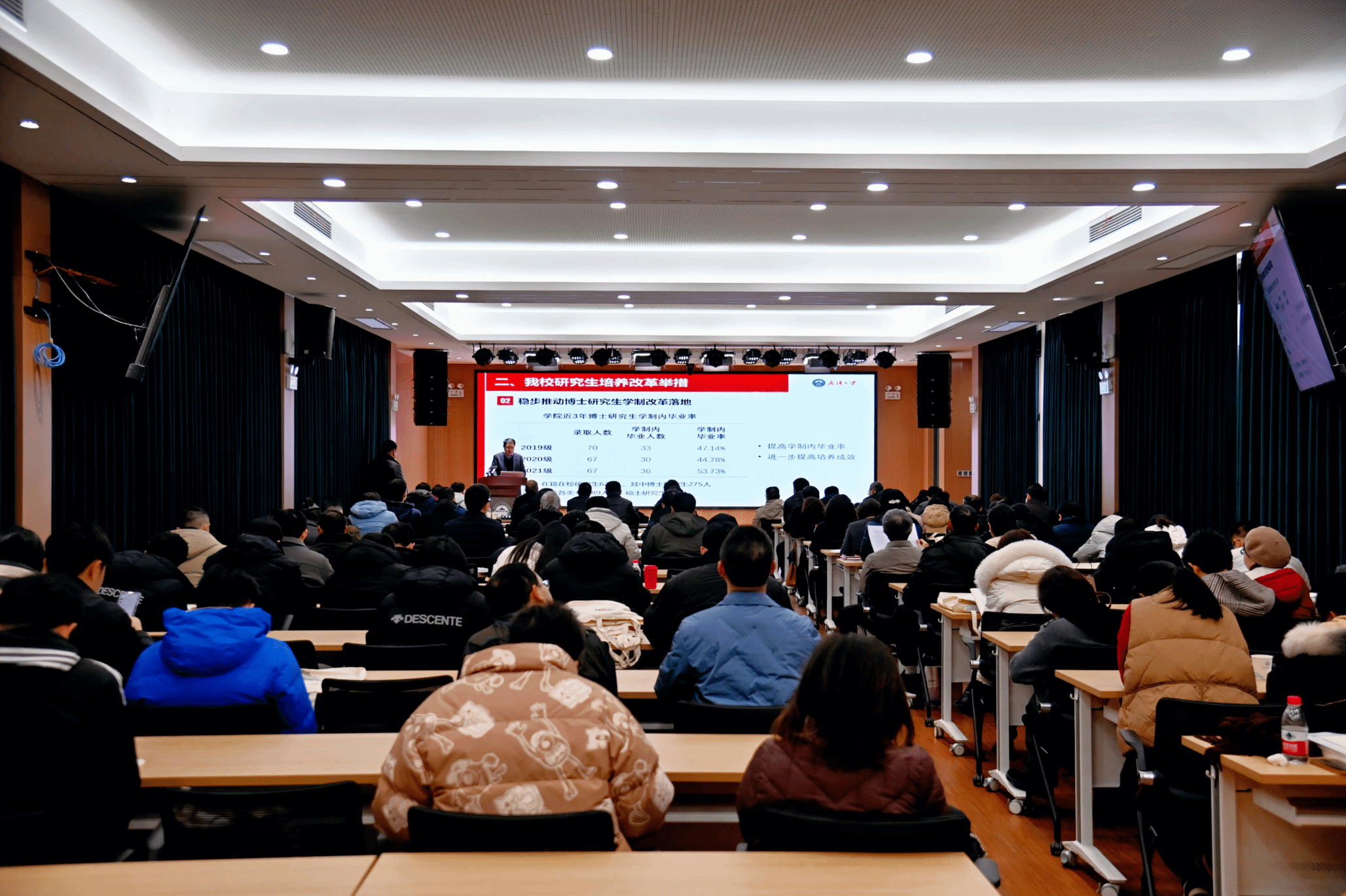 研究生院副院长包安裕做专题报告。他从研究生培养工作的角度,梳理了党和国家对研究生教育的要求,详细解读了学校研究生培养改革举措,为学院进一步做好研究生培养工作进行了指导。