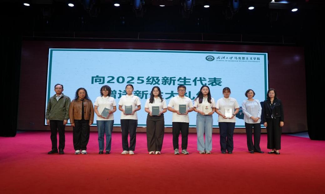 在校研究生代表2024级硕士研究生赵颖闻以“温度、深度、高度”为关键词,分享了在马院的成长感悟。赵颖闻表示,马院的“温度”体现在对学子的人文关怀中,让学子倍感温暖;“深度”源于顶尖的学科资源与多元实践平台,助力学术探索;“高度”则是学院培育担当民族复兴大任时代新人的责任担当。她鼓励新生以“马院人”身份,练就专业视野、扛起责任,让青春在奉献中绽放光彩,传递出武大马院学子的使命与担当。