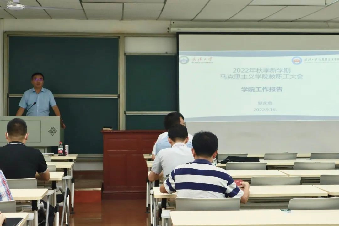 学院党委书记罗永宽做新学期工作报告,梳理总结上半年学院工作成绩,分析目前发展中存在的问题、面临的挑战和机遇,部署学院今后的努力方向与举措:一是对标思政课建设标准,推进思政课建设;二是对照“双一流”建设台账,推进学科建设;三是落实立德树人根本任务,提高人才培养质量;四是坚持“人才强院”,加大人才引育力度;五是积极参与高端学术交流,提升国际影响力;六是提高学院党建工作质量;七是推进精细管理,优化学院环境。