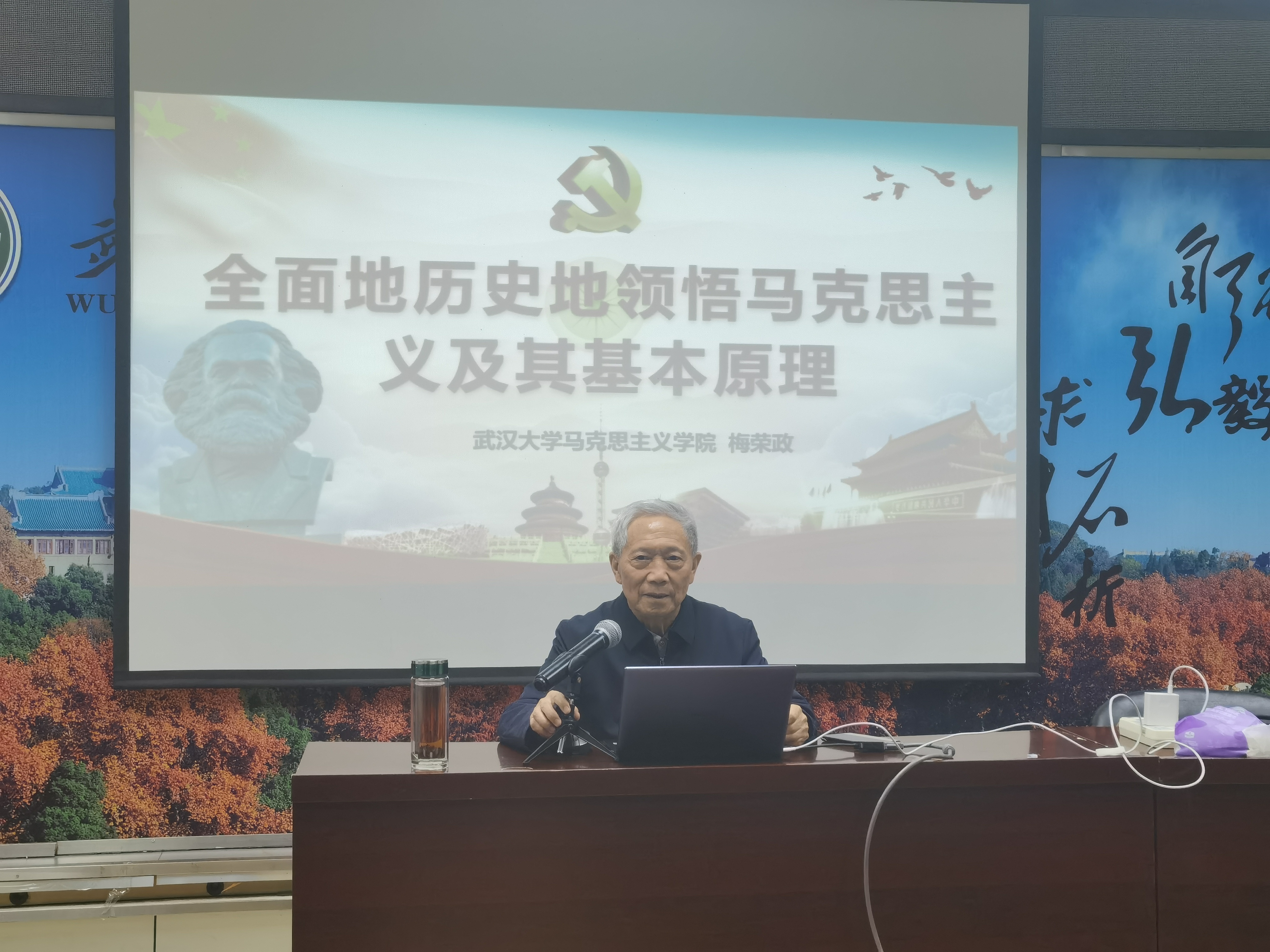 梅荣政教授应邀作题为《全面地历史地领悟马克思主义及其基本原理》的讲座。袁银传教授、院党委副书记孙燕及部分青年教师和博士、硕士研究生听了讲座。副院长简繁主持了本场讲座。