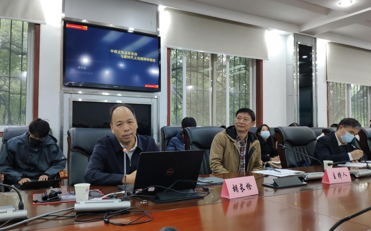 10月20日下午,马克思主义与当代中国论坛之一百五十七讲在学院M218会议室举行。中央党史文献研究院科研规划部副主任、研究员胡长栓应邀面向师生作了题为“中西文化总体差异与新时代文化精神的塑造”的学术讲座。本次讲座由佘双好教授主持,相关专业教师及硕博研究生参加了会议。