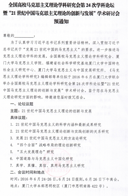 转:全国高校马克思主义理论学科研究会第24次学科论坛预通知