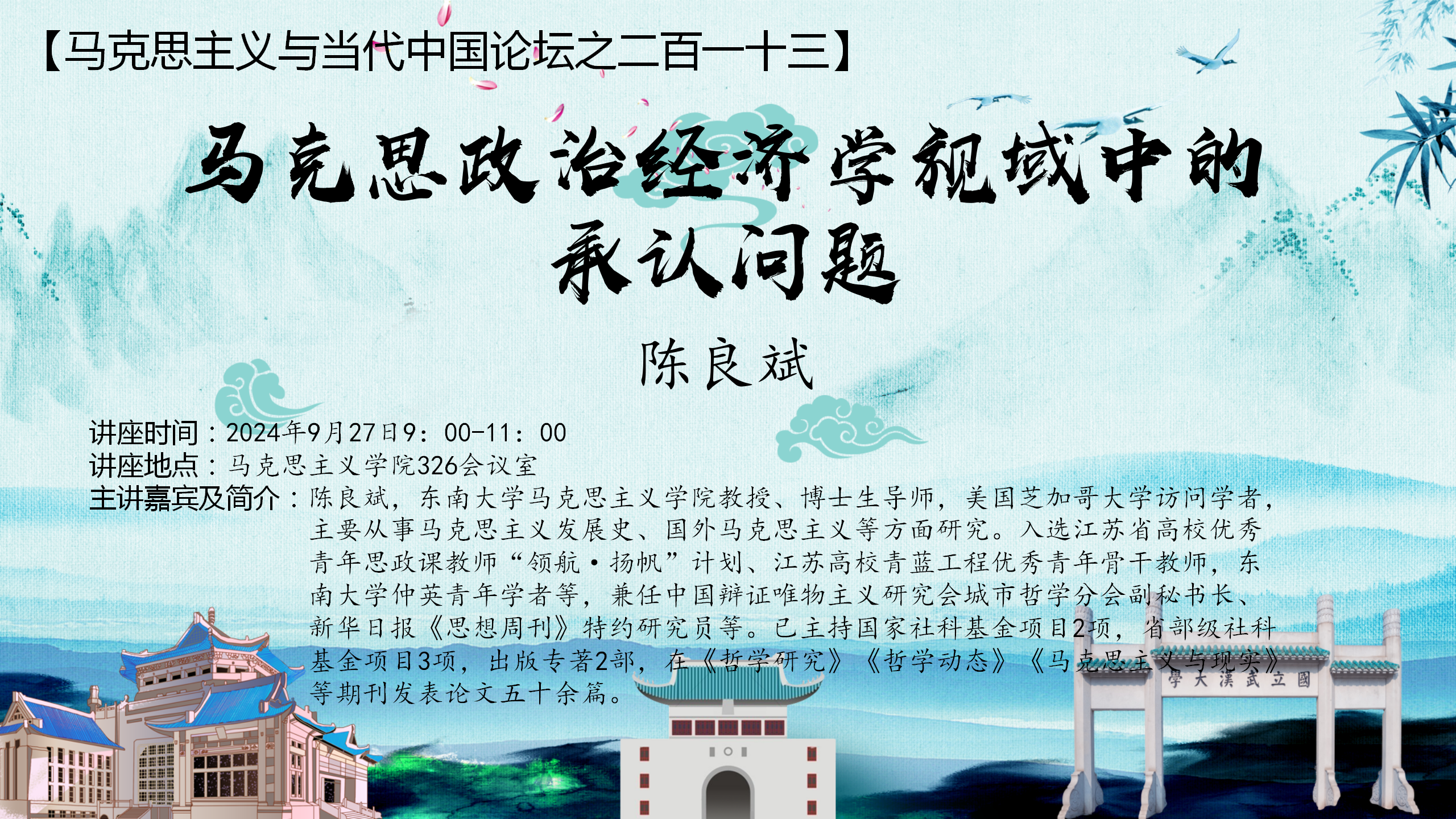 讲座主题:马克思主义政治经济学视域中的承认问题