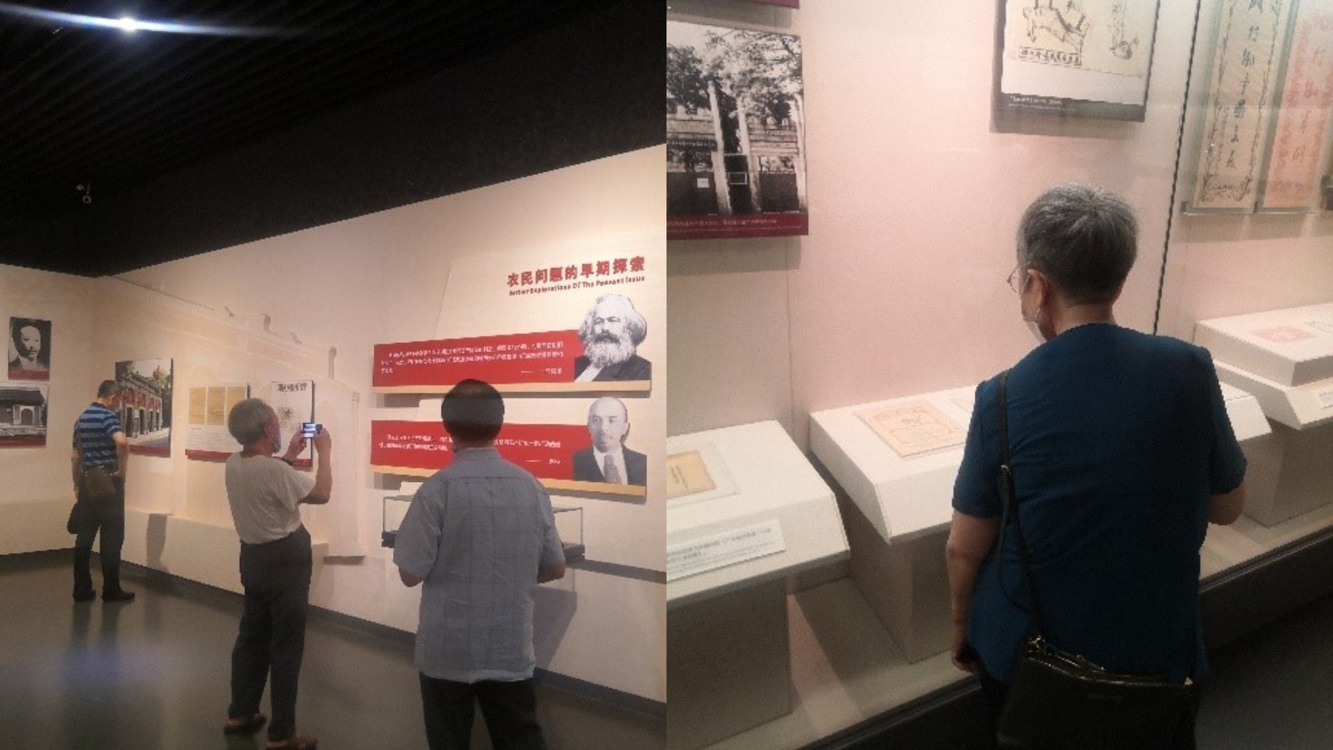 老干部们在认真地观看图片、说明、视频以及纪念文物等,深切缅怀革命先烈的丰功伟绩,回忆建党百年来的沧桑巨变,感慨没有共产党就没有新中国。